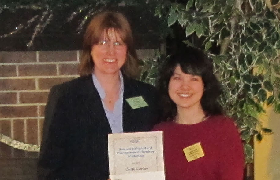 Professor Lori Jones presented the Honours Biological and Pharmaceutical Chemistry Scholarship to Emily Carlson |