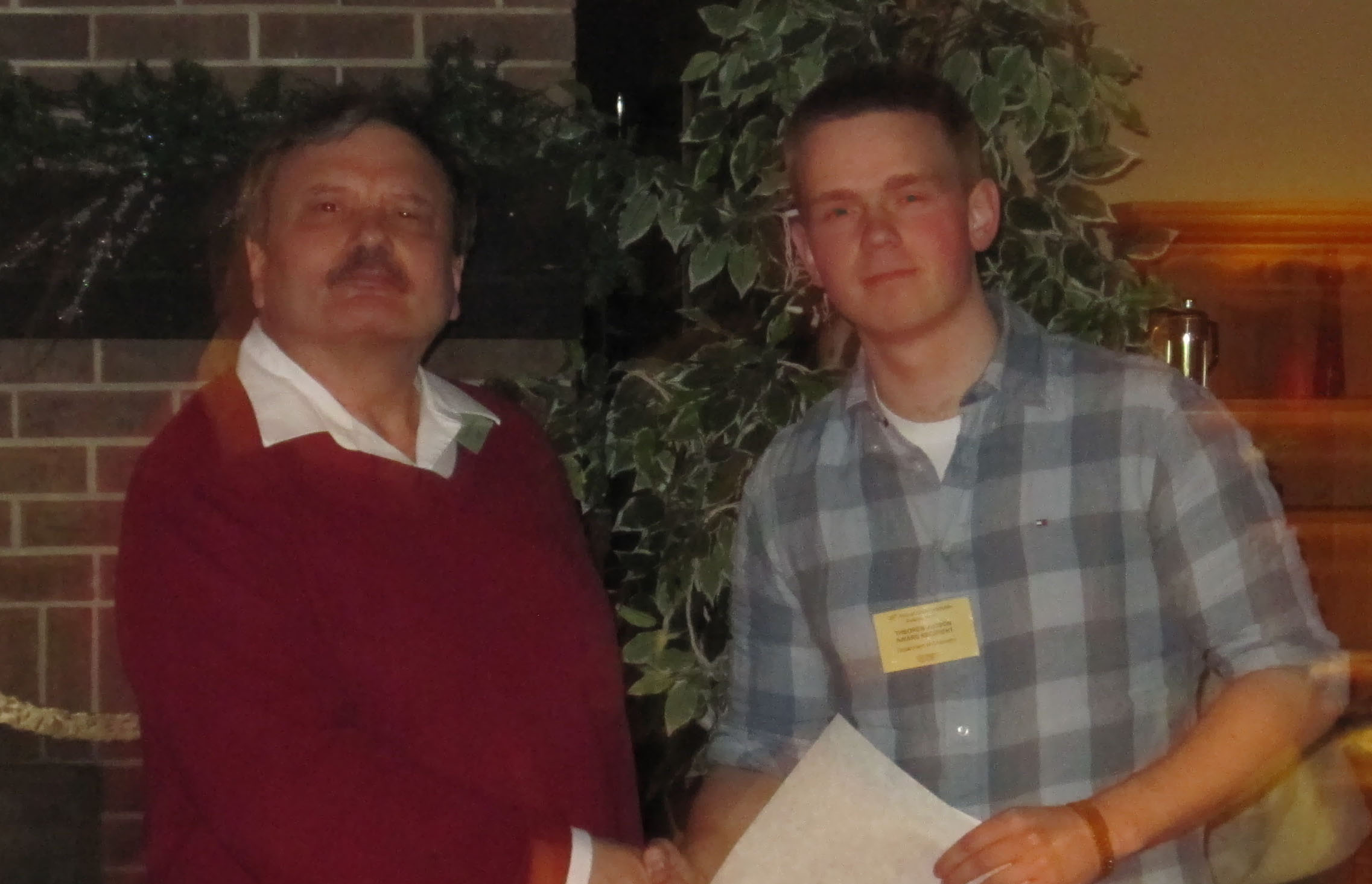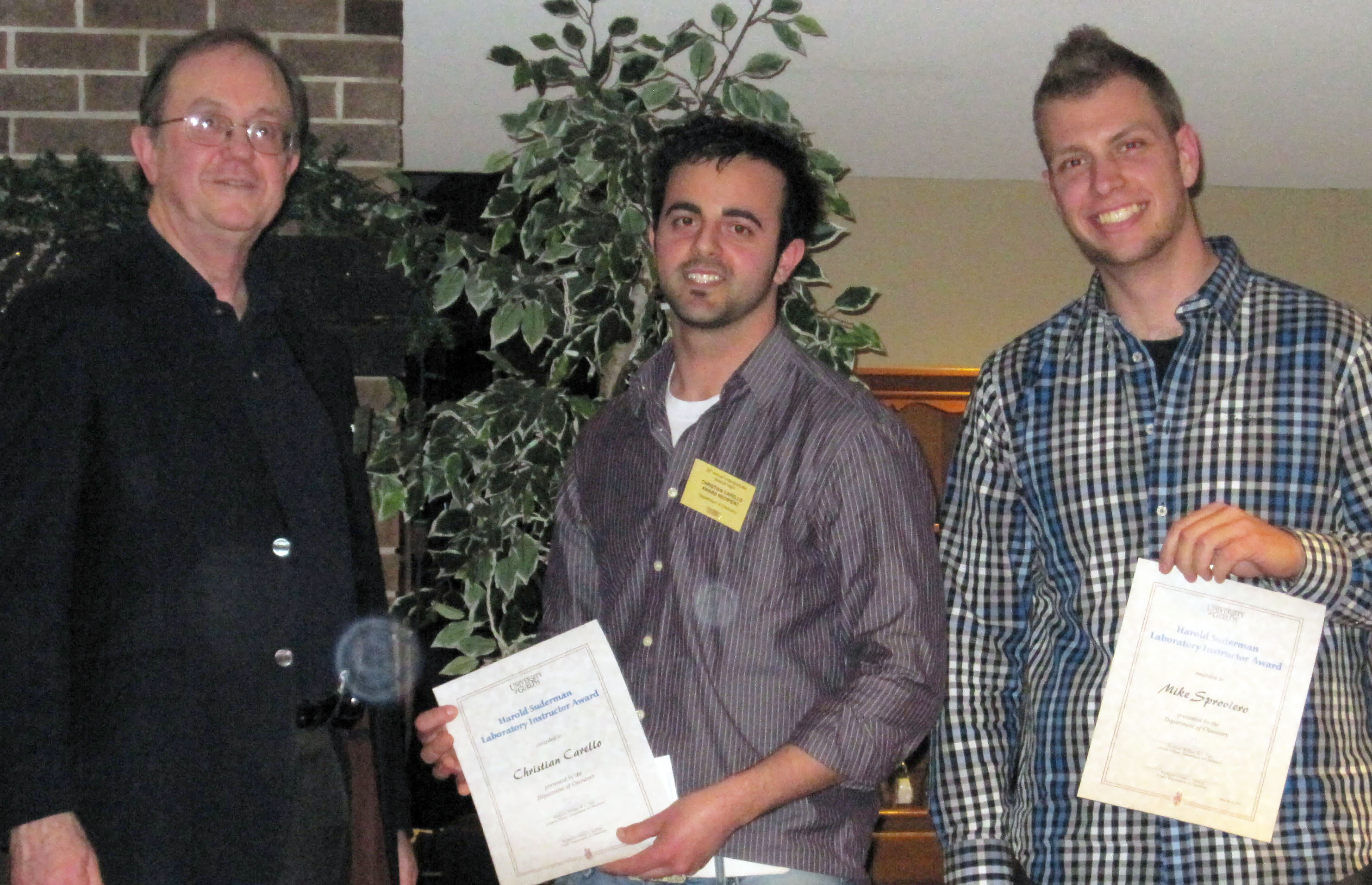Professor Peter Tremaine presented the Harold Suderman Laboratory Instructor Awards to Mike Sproviero and Christian Carello |