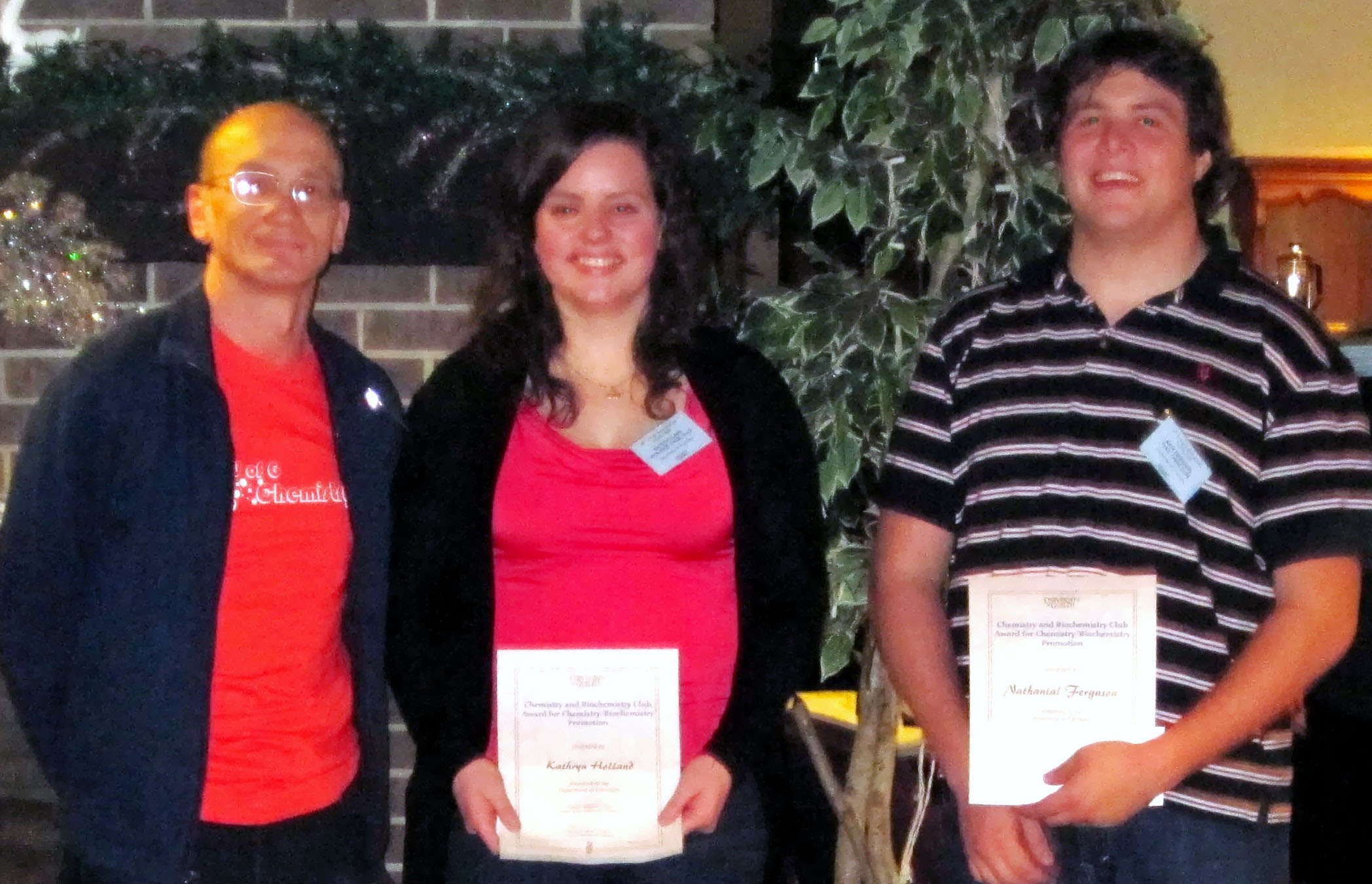 Professor Dmitriy Soldatov presented the Chemistry and Biochemistry Club Award for Chemistry/Biochemistry Promotion to Katie Holland and Nate Ferguson |