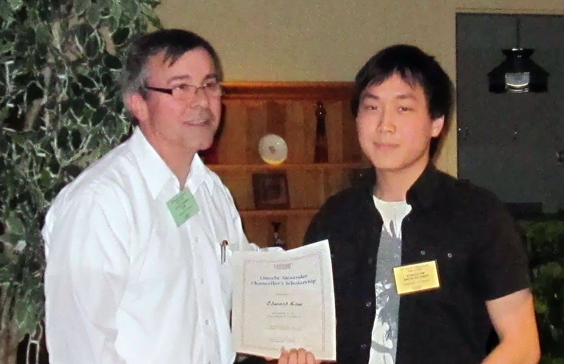 to Edward Kim.; Sofia Oke also won the scholarship but was unable to attend. |