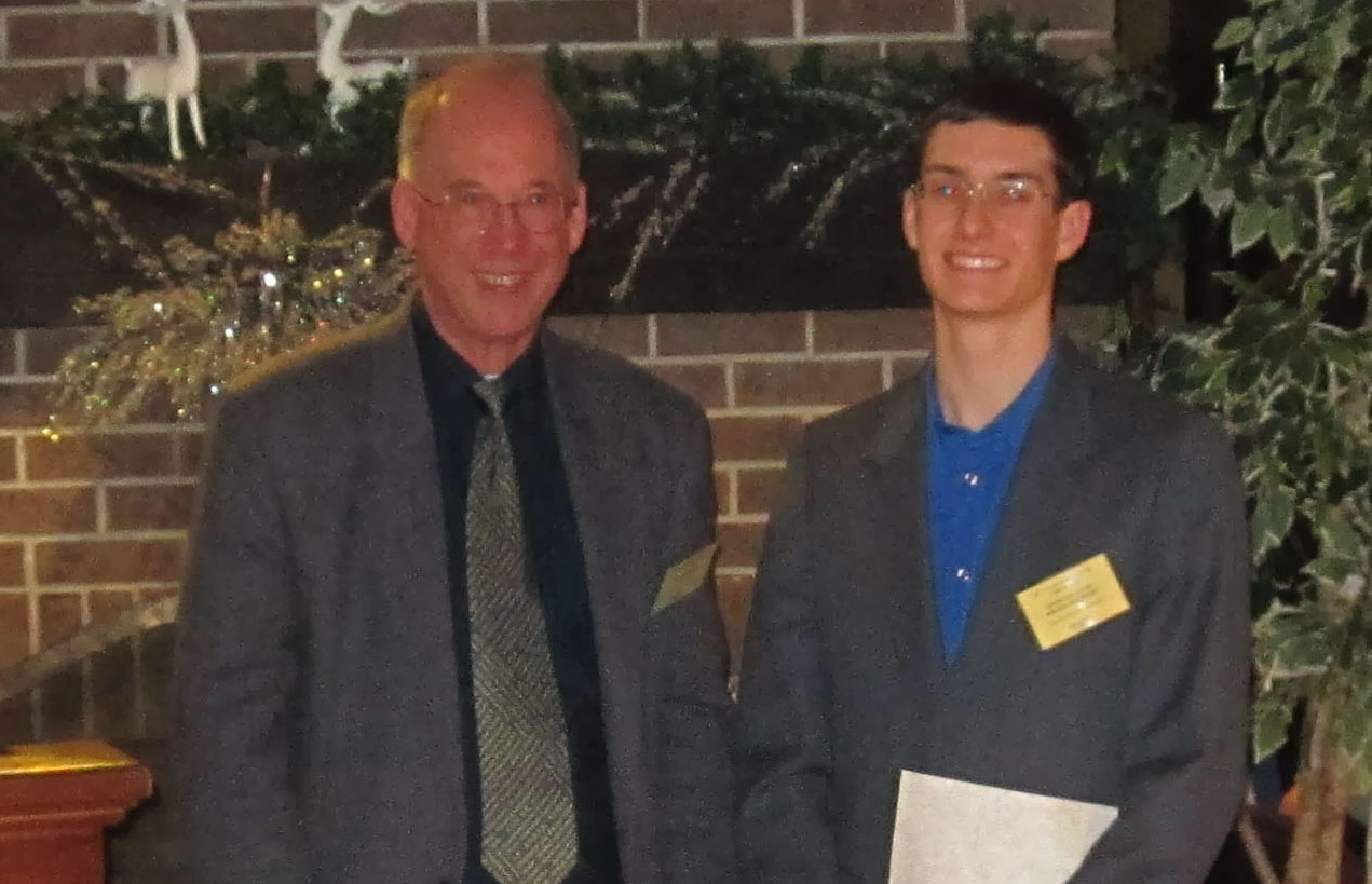 Professor Aziz Houmam presented the George A. Farley Scholarship to Thomas Malig |