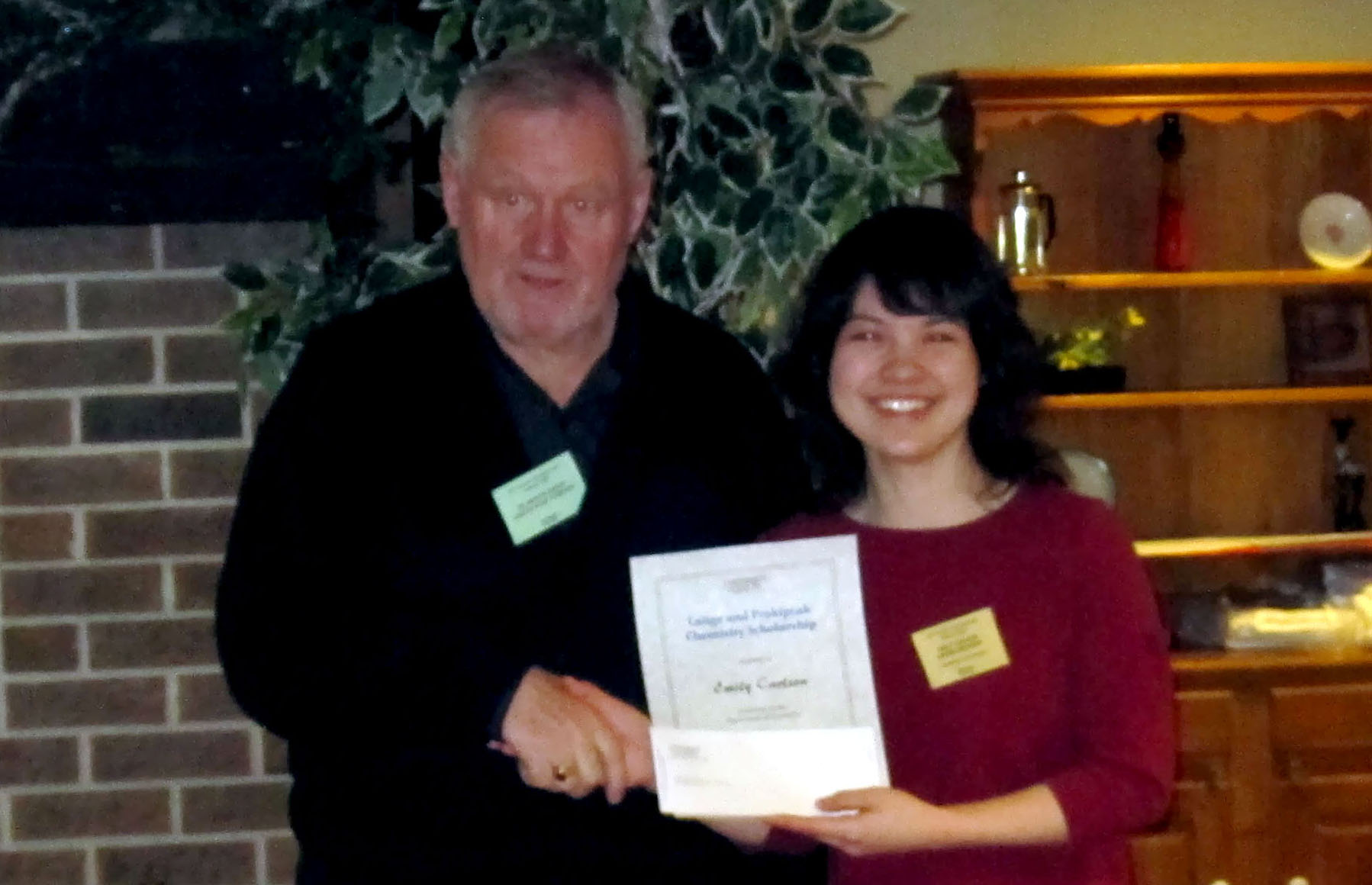Dr. Martin Bosch presented the Lange and Prokipcak Chemistry Scholarship to Emily Carlson |